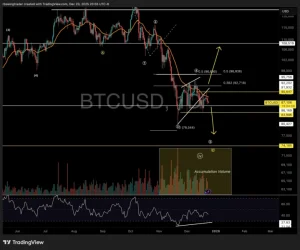 “$BTC Los inversores inteligentes están comprando en esta zona. Pueden manipularlo para que vuelva a caer a un nuevo mínimo y simplemente revertirlo. Esperan a que se produzca dicha acción”, destacó RBswingtrader en X.