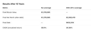 Pese a ello, el inversionista abre la puerta a un endeudamiento mayor: «Un 30% también podría tener sentido con preferentes», siempre que la estructura de financiamiento lo sostenga. Esto impulsaría aún más la rentabilidad anual compuesta de BTC, pero conservando la flexibilidad de las acciones preferentes como red de seguridad».