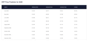 Al igual que el sitio web Crypto Predictions, CoinCodex pronostica que es improbable que el precio de XRP alcance los 3 dólares en 2026. Se espera que los próximos meses sean ligeramente alcistas, con posibles predicciones de dos dígitos que impulsarían su precio al alza. Sin embargo, la mayoría de las predicciones aún se mantienen por debajo de los 2 dólares.
