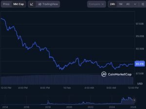 La capitalización de mercado del token cayó de 101 mil millones de dólares a 89.31 mil millones de dólares al cierre de esta edición, lo que supone una fuerte contracción de 11.6 mil millones de dólares en un solo día.