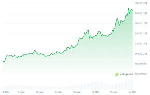 El token nativo del protocolo Bittensor (TAO) acumula una subida de más del 55% en los últimos 7 días y cotiza cerca de los 283 dólares, su nivel más alto en más de seis semanas.